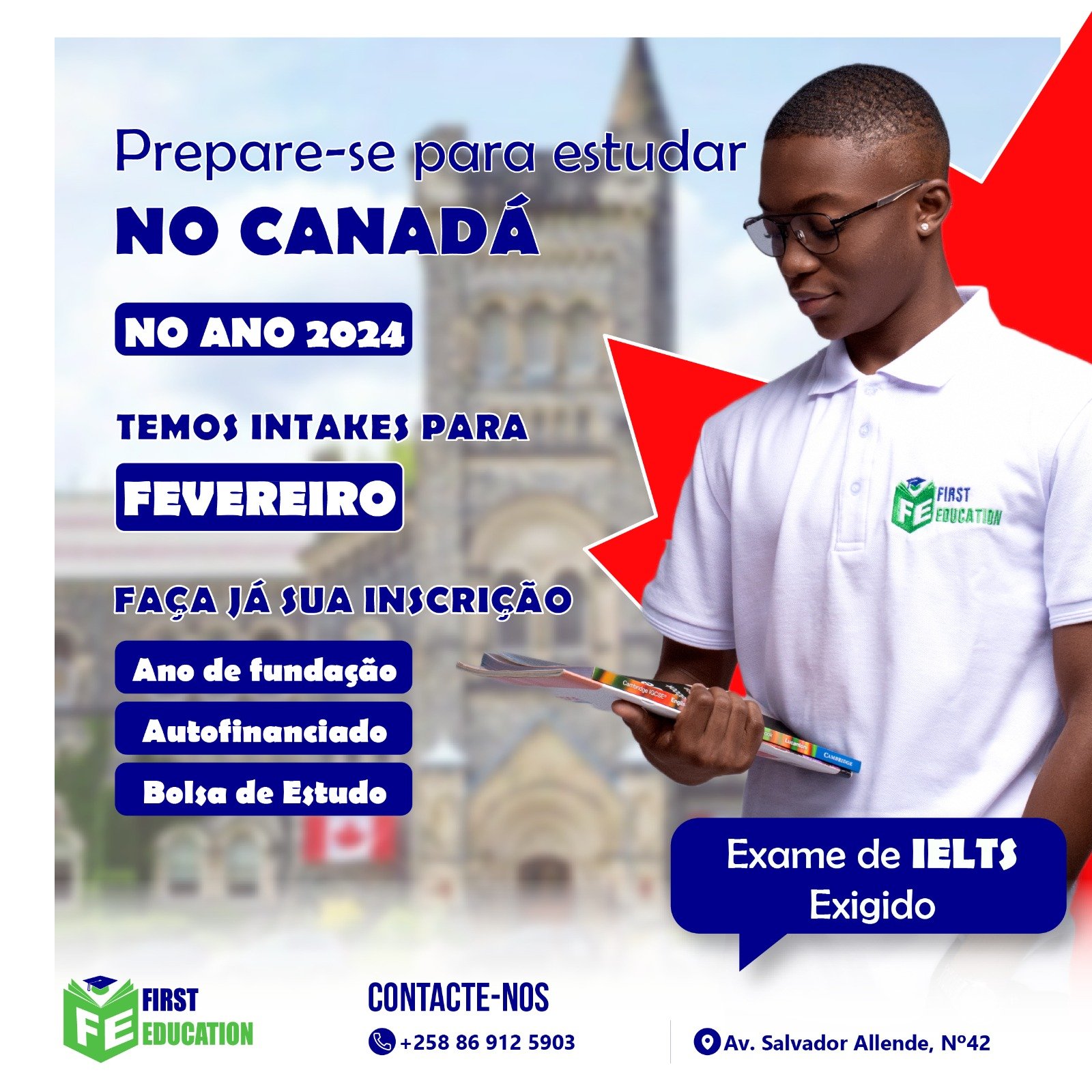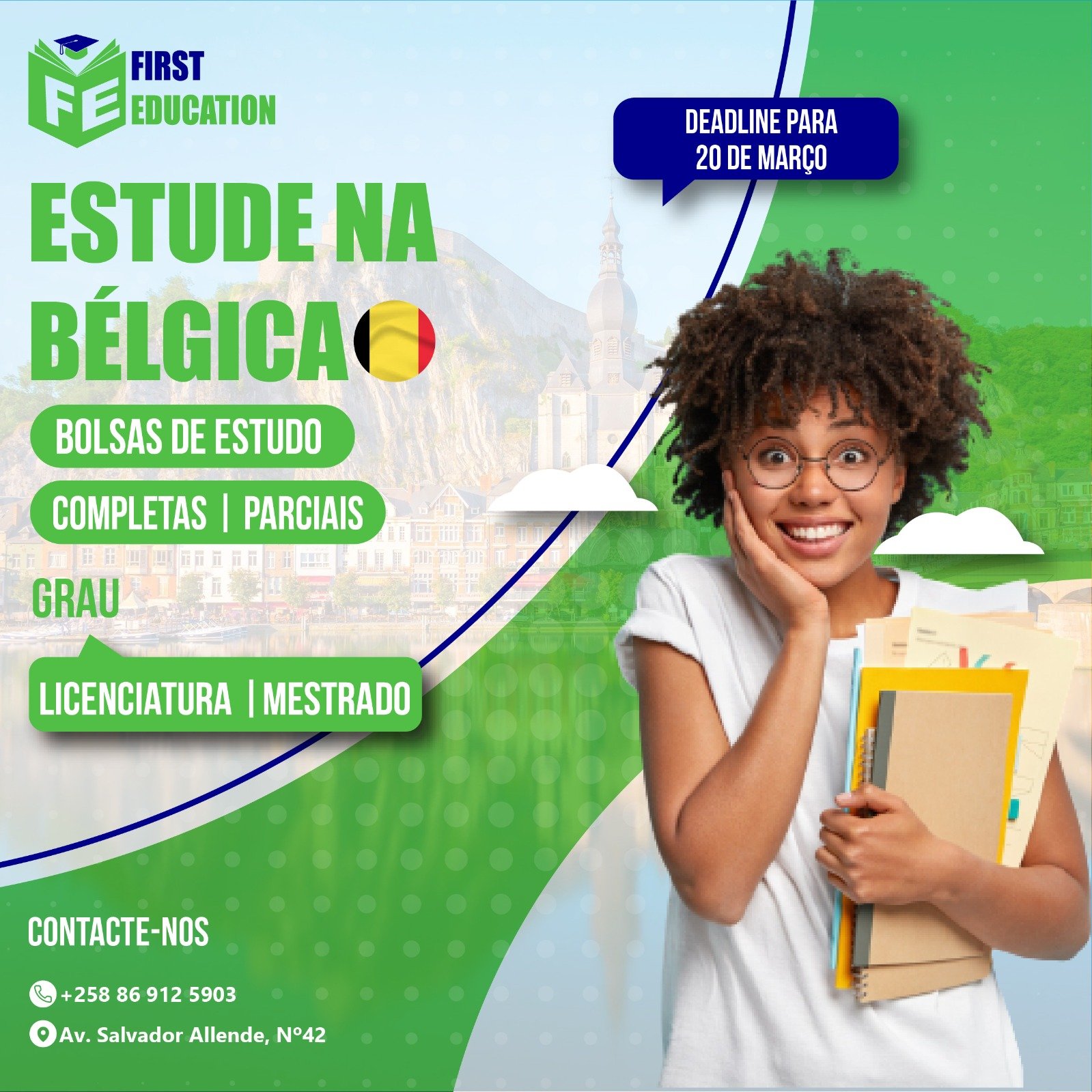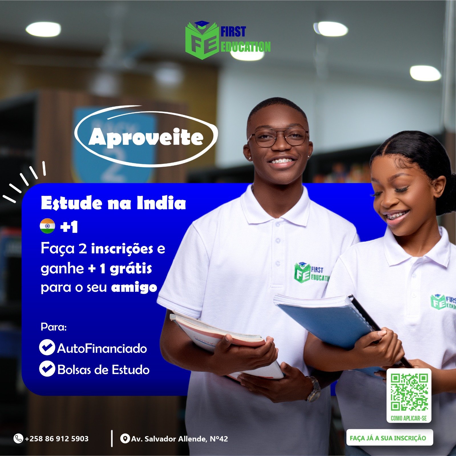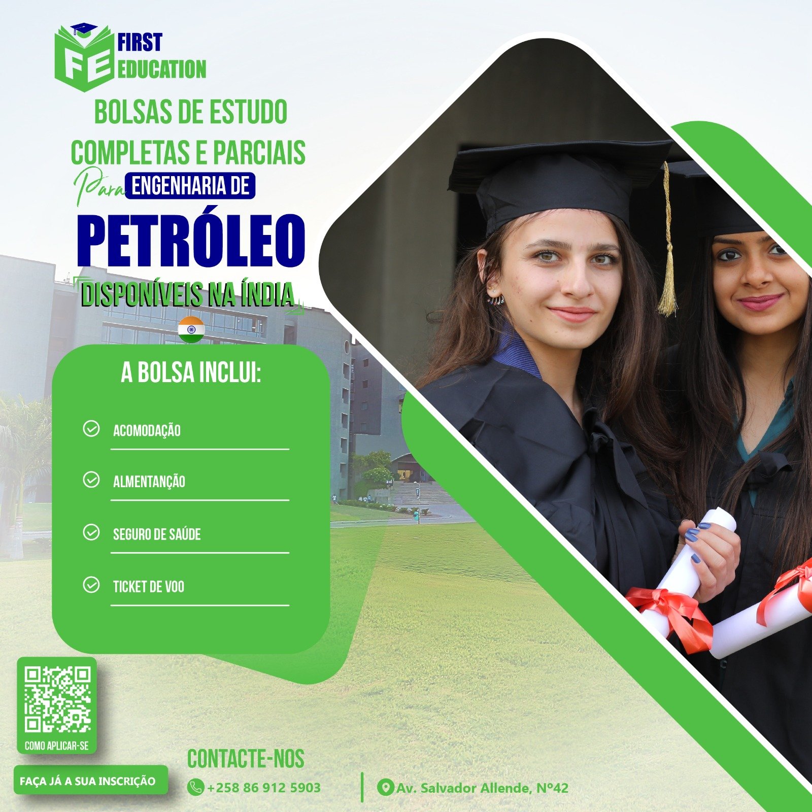 A First Education oferece serviço de Bolsa de estudo, Inscrição universitária, Ano de Fundação e curso on-line. Caso tenha uma dúvida, entre em contacto com o agente para melhor esclarecimento antes de escolher o serviço.
