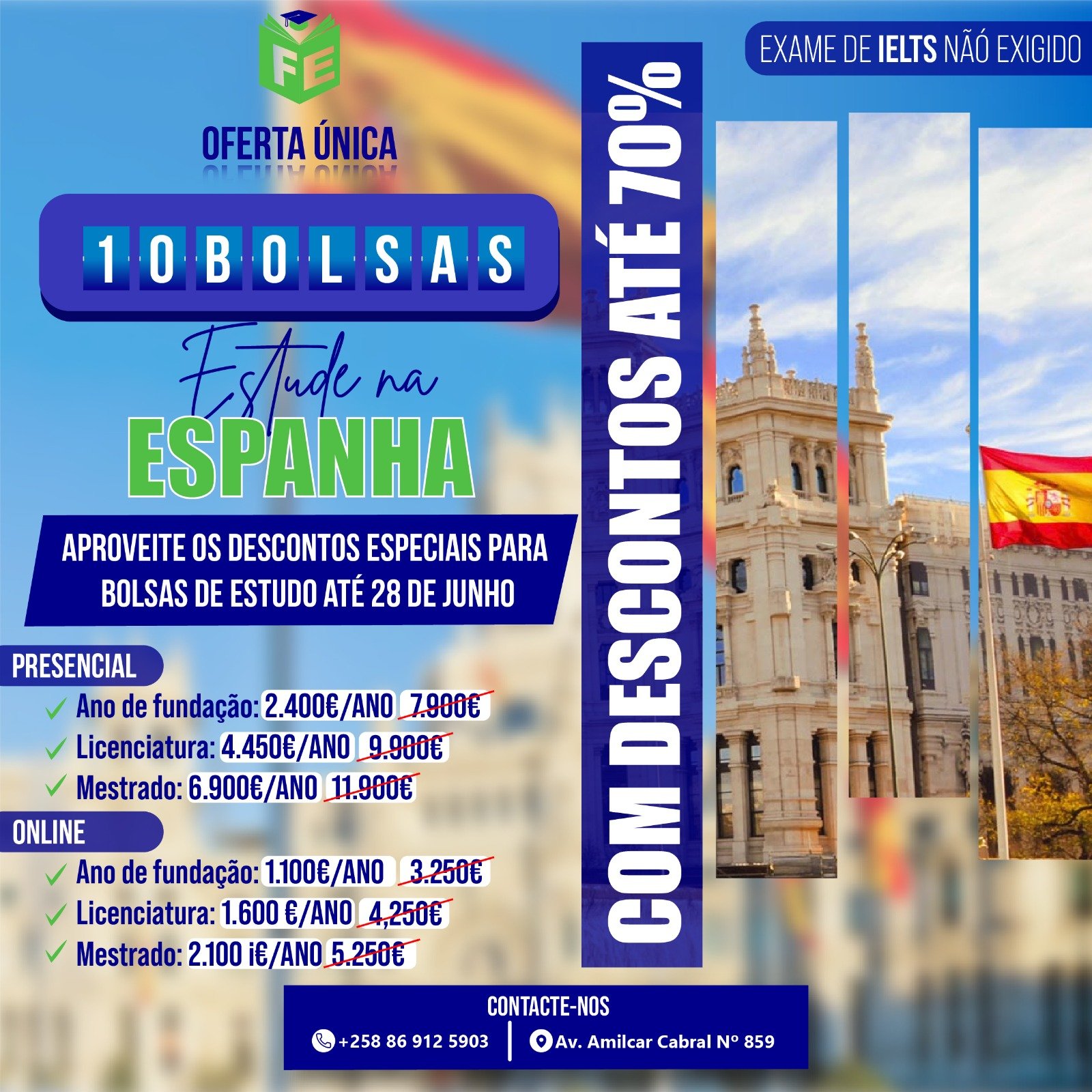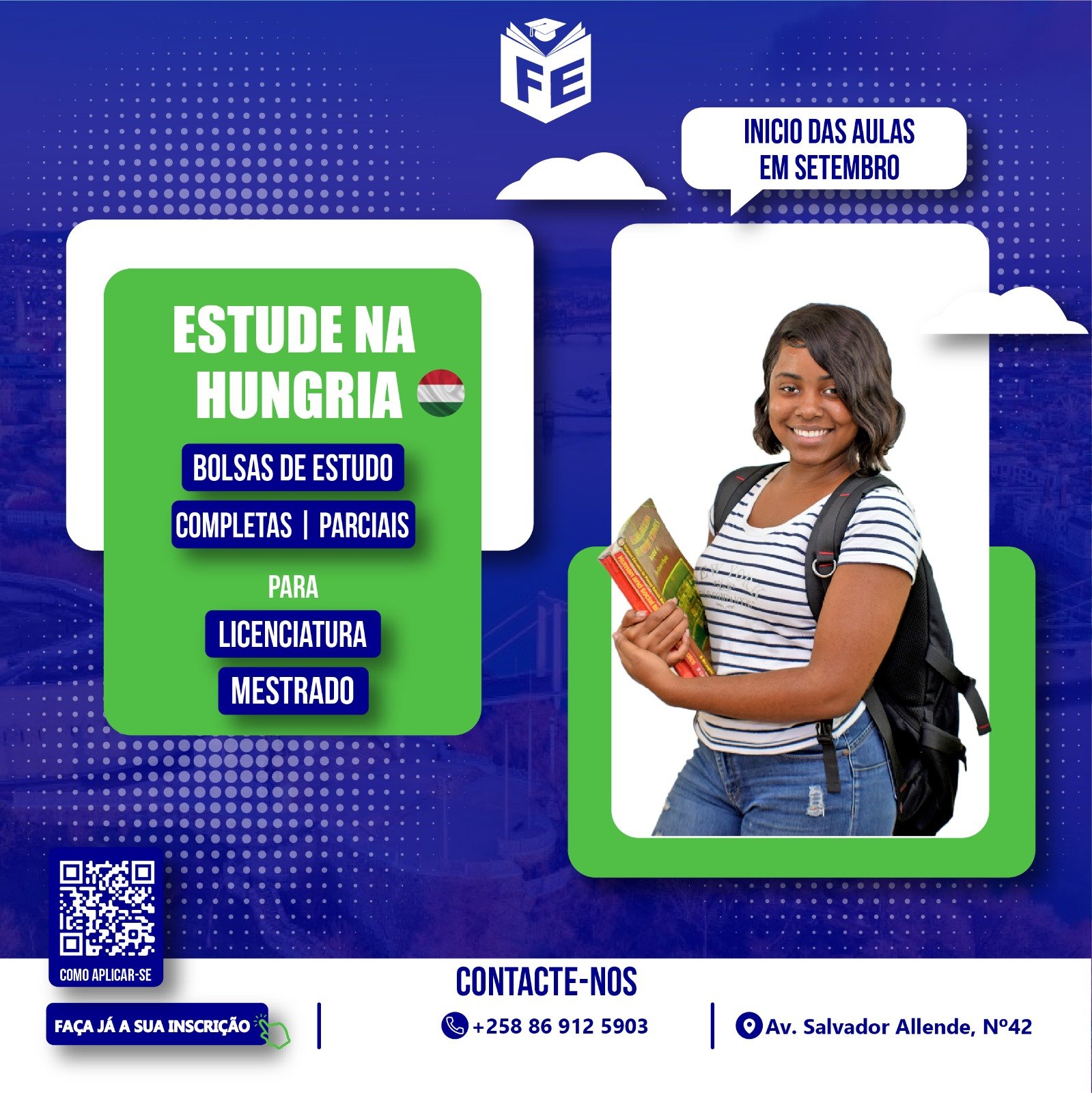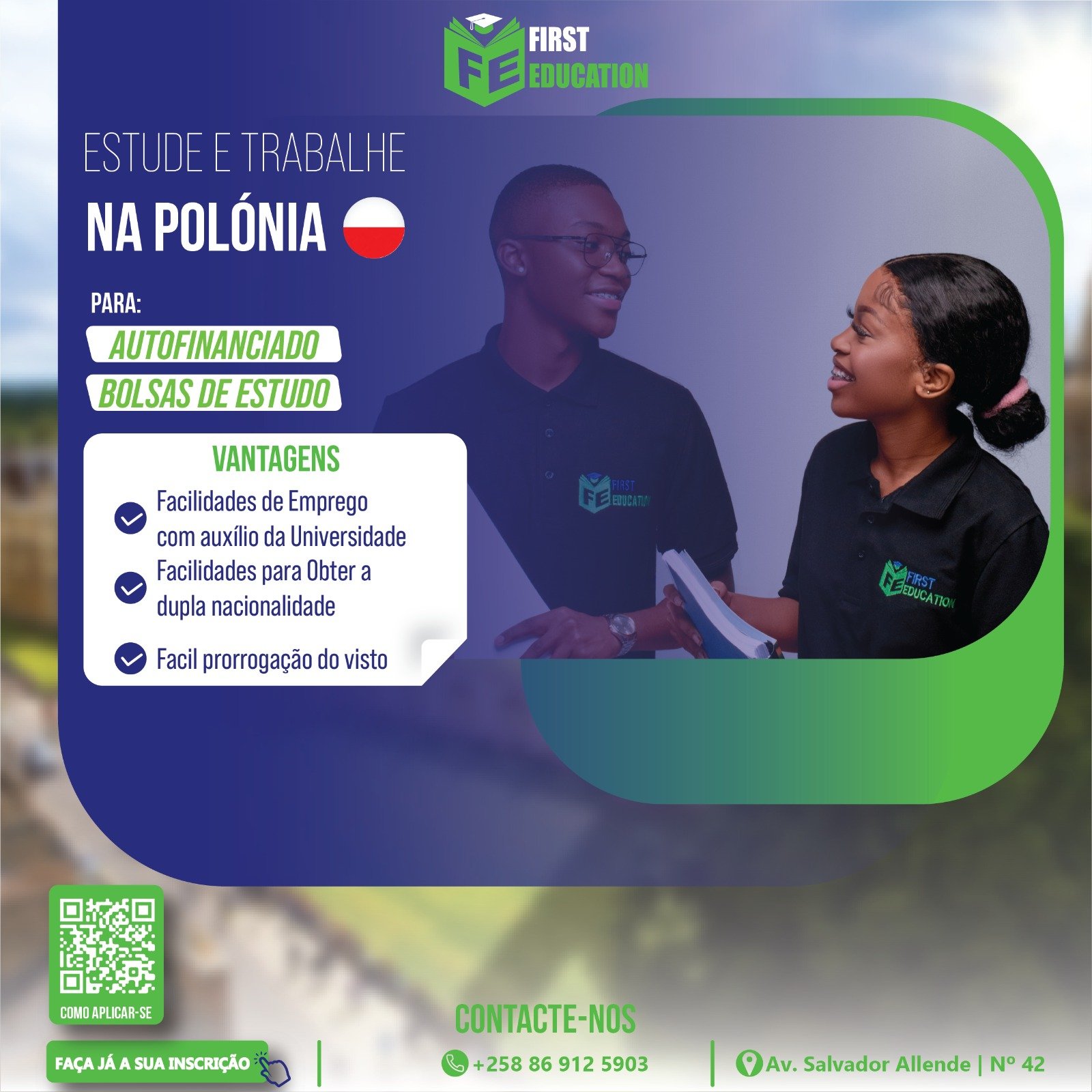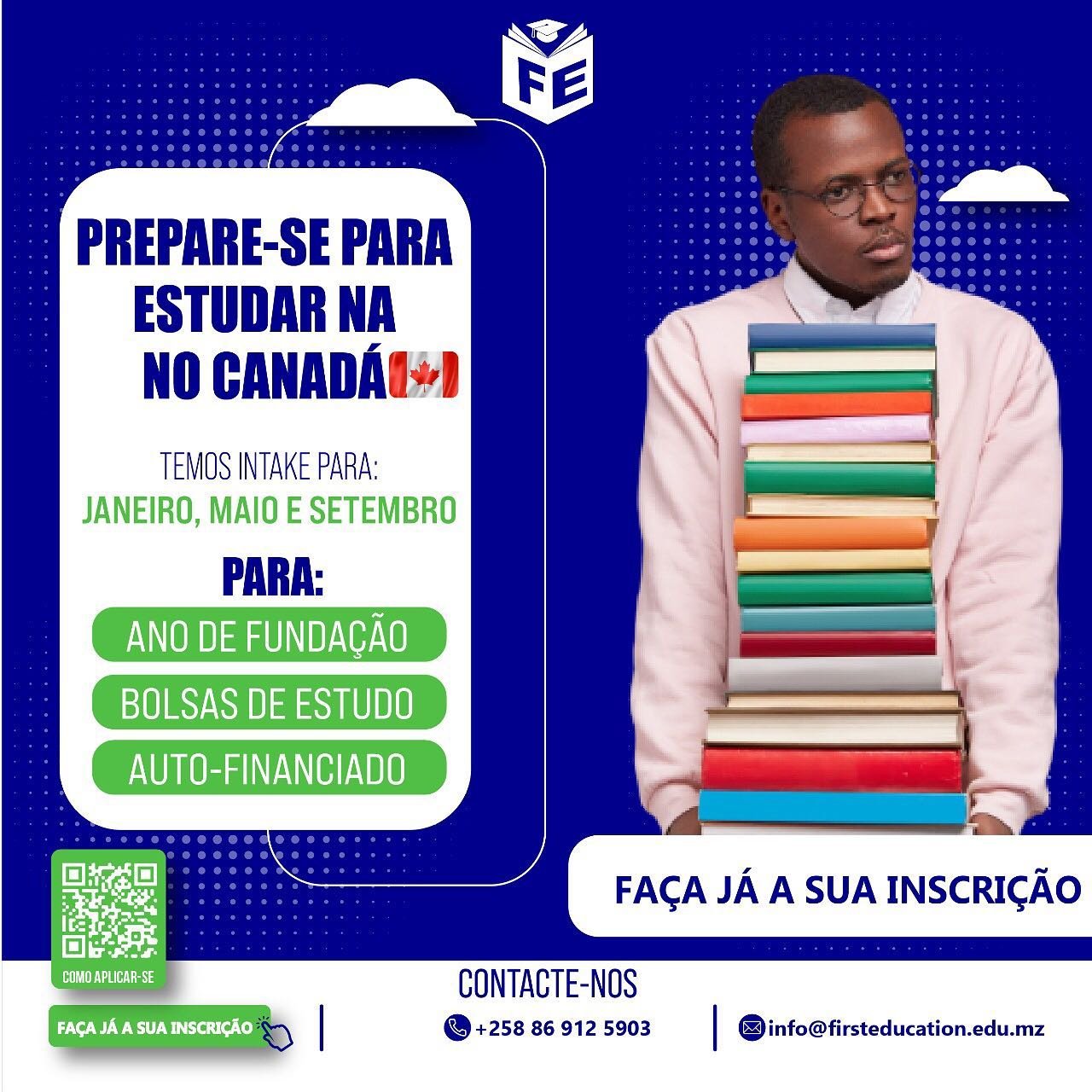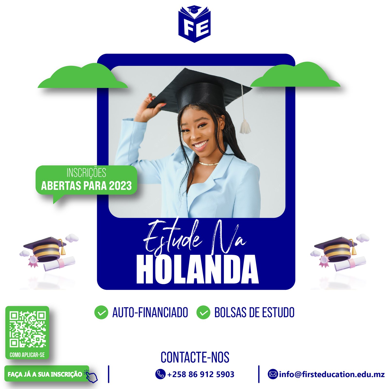 A First Education oferece serviço de Bolsa de estudo, Inscrição universitária, Ano de Fundação e curso on-line. Caso tenha uma dúvida, entre em contacto com o agente para melhor esclarecimento antes de escolher o serviço.